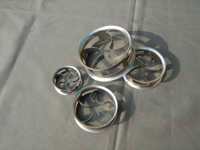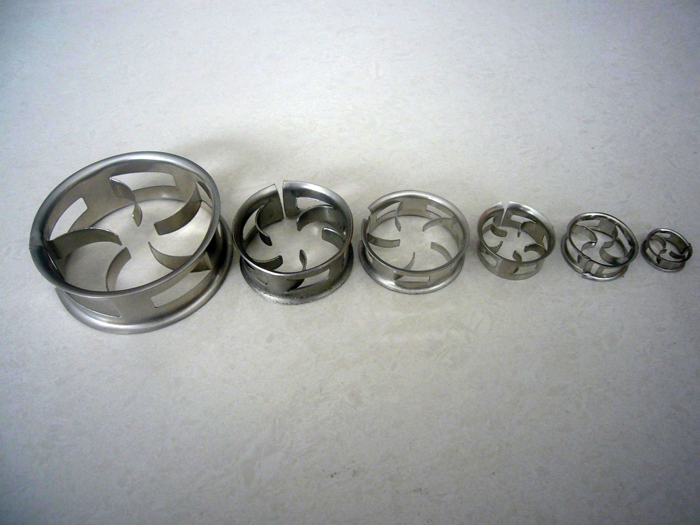 階梯環填料的側端增加了翻邊,不但可以增加填料環的機械強度,而且由于破壞了填料結構的對稱性,因而增加了填料投放時的定向幾率。