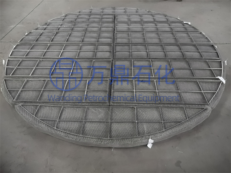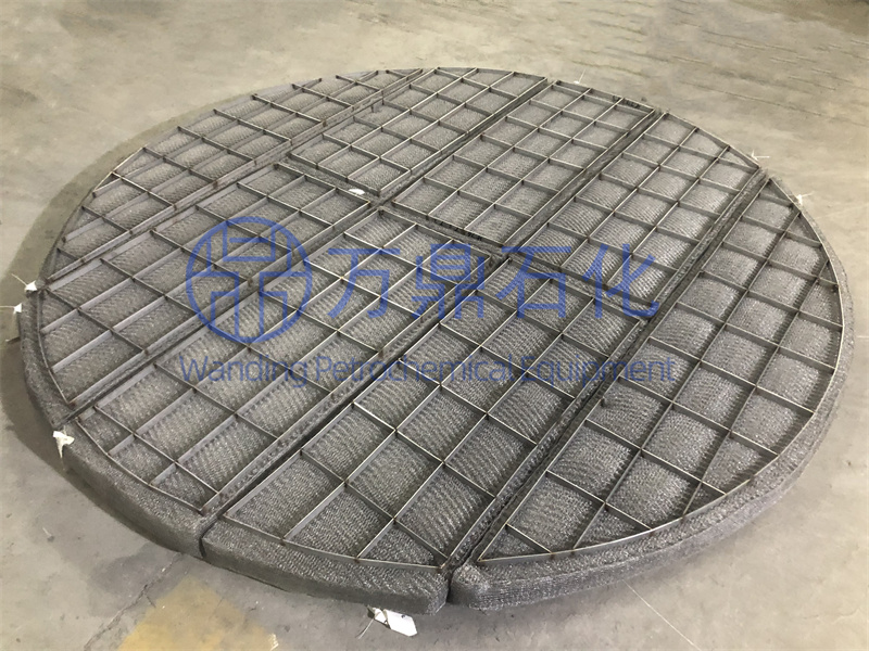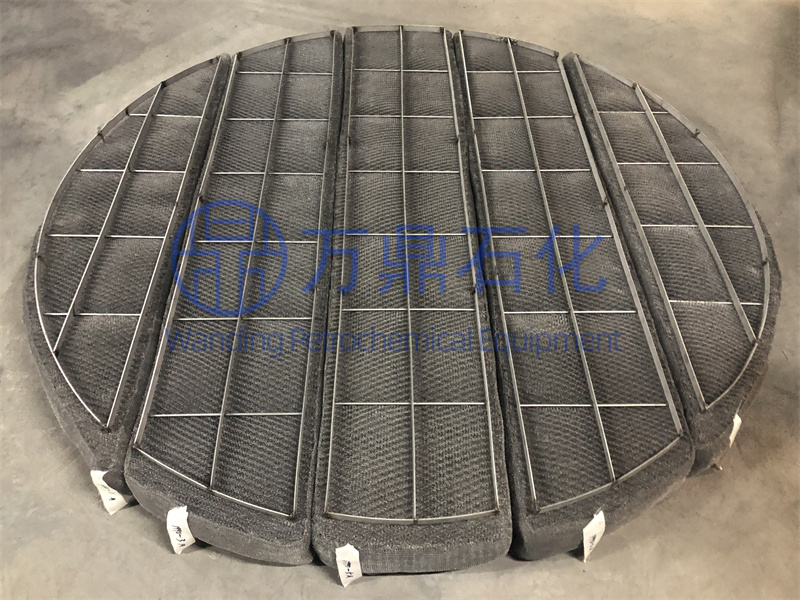 隨看新型高效填料的開發,有時塔內機作氣速很高,造成塔頂沫夾帶嚴量,不但造成物料的損失,也使塔的效率降低,同時還可能對環境造成污染。為了避免這種情況,需要在塔項設置除霧器裝置,從而將氣體中央帶的霧沫除去,對某些昂貴的物料還可對其霧滴進行回收。對除霧器的要求是除沫效率高、壓降小、不易堵,結構簡單。我們可以制作小到手掌大小,大到直徑20米的除霧器。我們也可以根據客戶的要求將除沫器制成任何形狀和厚度。以及根據不同領域制作多種絲網密度的除沫器。
