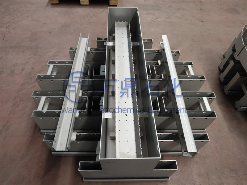 為了保證槽式液體分布器的分布質(zhì)量,除分布點(diǎn)數(shù)外,*重要的是各分布點(diǎn)具有相同的流量,為此要求布液孔(或溢流孔)直徑(或尺寸)相同,而且應(yīng)處于同一水平面上;一級槽液體分配要均勻;要保持各槽的水平度在0.3%以內(nèi),以免形成槽兩端過大的液面落差。目前布液孔加工方式有兩種,即鉆孔與沖孔,而以沖孔為宜,它不但能保證加工精度,而且加工速度快。鉆孔可以省去沖孔模具,且可多層板同時加工,但由于鉆頭磨損易造成較大的加工誤差,應(yīng)注意調(diào)整,同時加工后應(yīng)去除毛刺。